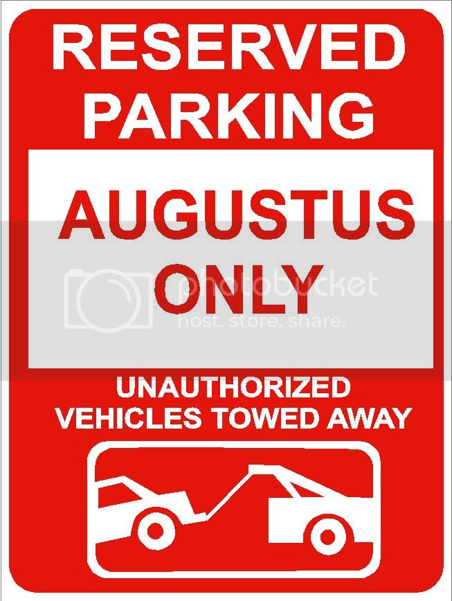 9"x12" AUGUSTUS ONLY RESERVED parking aluminum novelty sign great for indoor or outdoor long term use.
