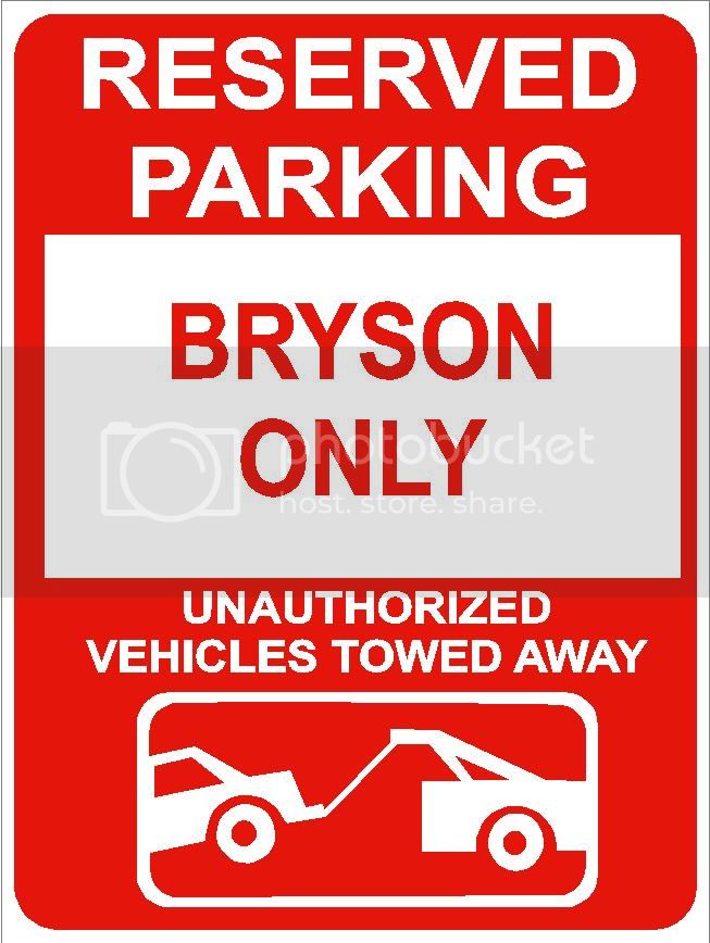 9"x12" BRYSON ONLY RESERVED parking aluminum novelty sign great for indoor or outdoor long term use.