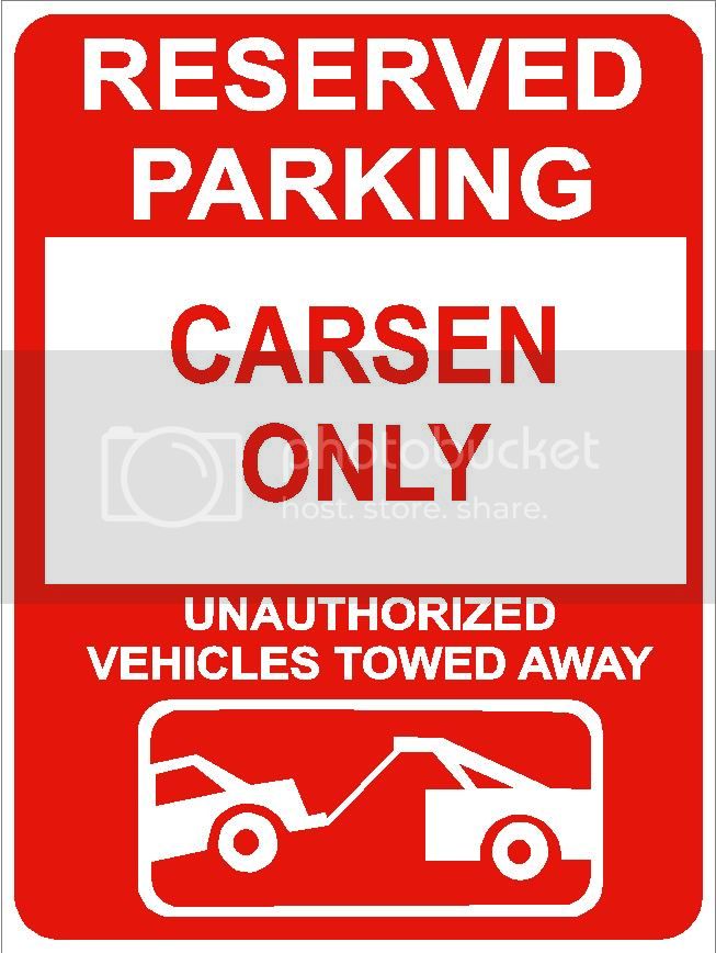 9"x12" CARSEN ONLY RESERVED parking aluminum novelty sign great for indoor or outdoor long term use.