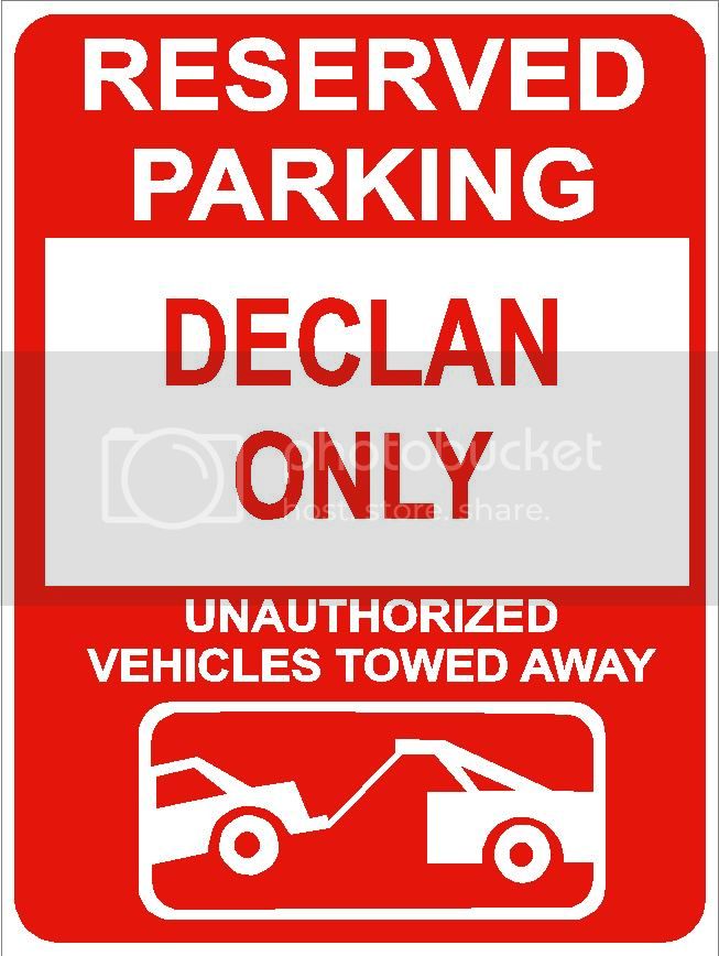 9"x12" DECLAN ONLY RESERVED parking aluminum novelty sign great for indoor or outdoor long term use.