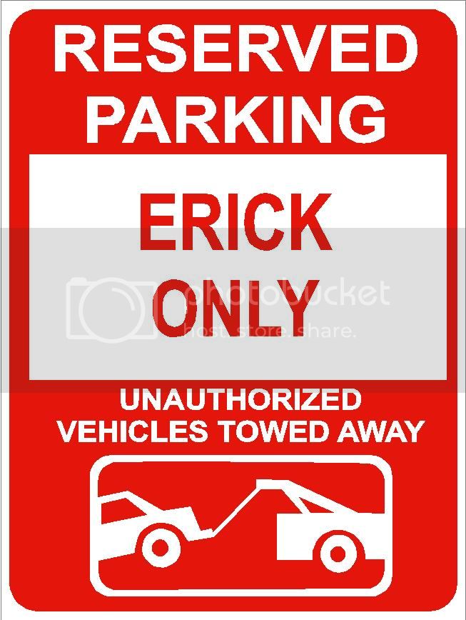 9"x12" ERICK ONLY RESERVED parking aluminum novelty sign great for indoor or outdoor long term use.