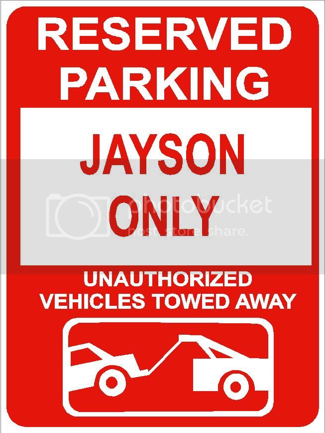 9"x12" JAYSON ONLY RESERVED parking aluminum novelty sign great for indoor or outdoor long term use.