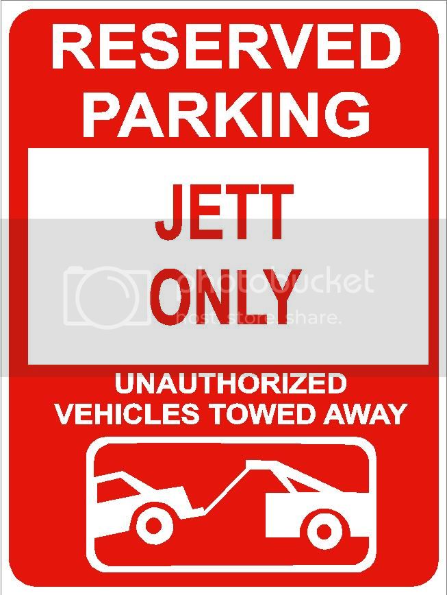 9"x12" JETT ONLY RESERVED parking aluminum novelty sign great for indoor or outdoor long term use.