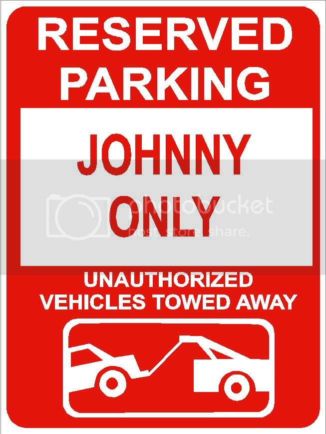 9"x12" JOHNNY ONLY RESERVED parking aluminum novelty sign great for indoor or outdoor long term use.