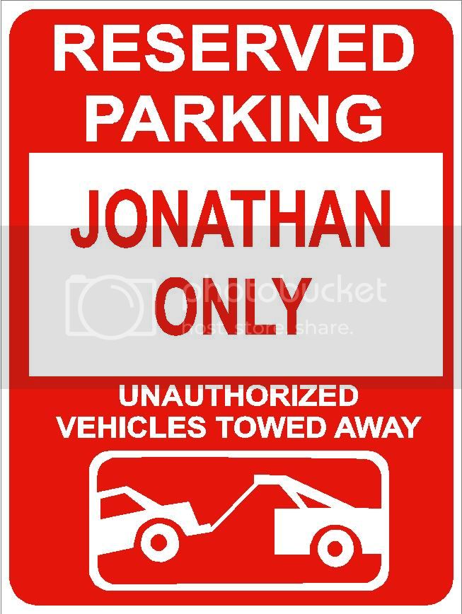 9"x12" JONATHAN ONLY RESERVED parking aluminum novelty sign great for indoor or outdoor long term use.