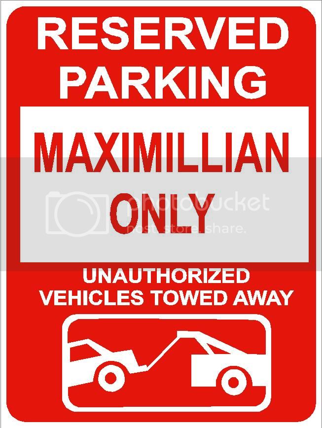 9"x12" MAXIMILLIAN ONLY RESERVED parking aluminum novelty sign great for indoor or outdoor long term use.