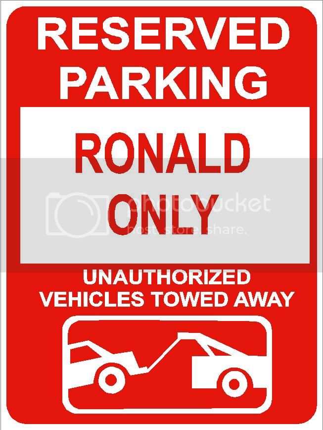9"x12" RONALD ONLY RESERVED parking aluminum novelty sign great for indoor or outdoor long term use.