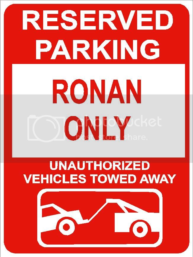 9"x12" RONAN ONLY RESERVED parking aluminum novelty sign great for indoor or outdoor long term use.