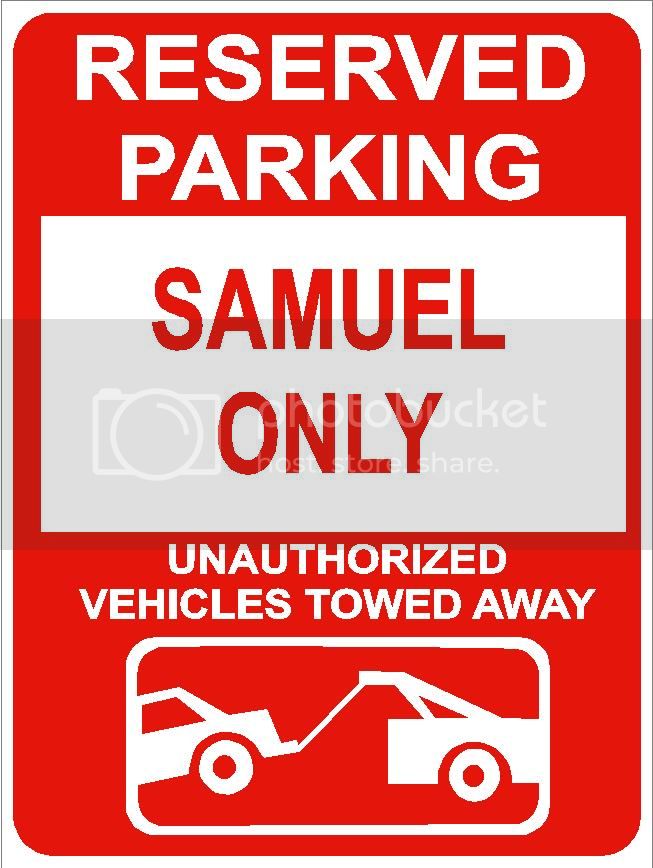 9"x12" SAMUEL ONLY RESERVED parking aluminum novelty sign great for indoor or outdoor long term use.