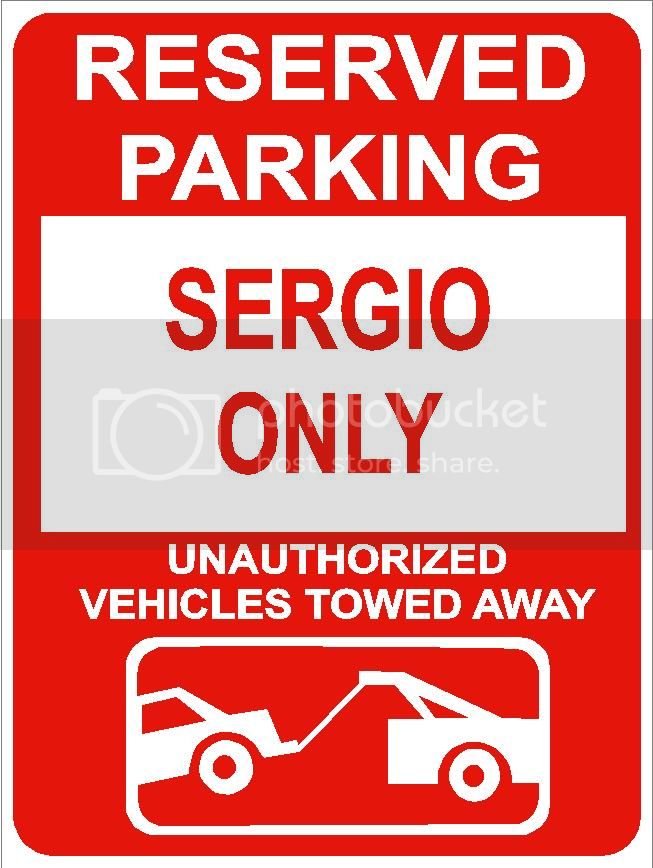 9"x12" SERGIO ONLY RESERVED parking aluminum novelty sign great for indoor or outdoor long term use.