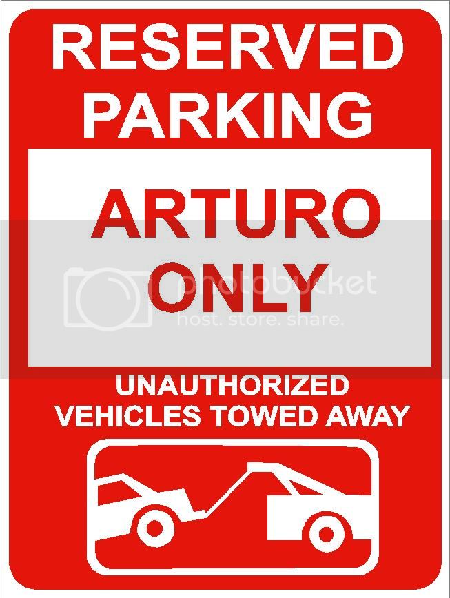9"x12" ARTURO ONLY RESERVED parking aluminum novelty sign great for indoor or outdoor long term use.