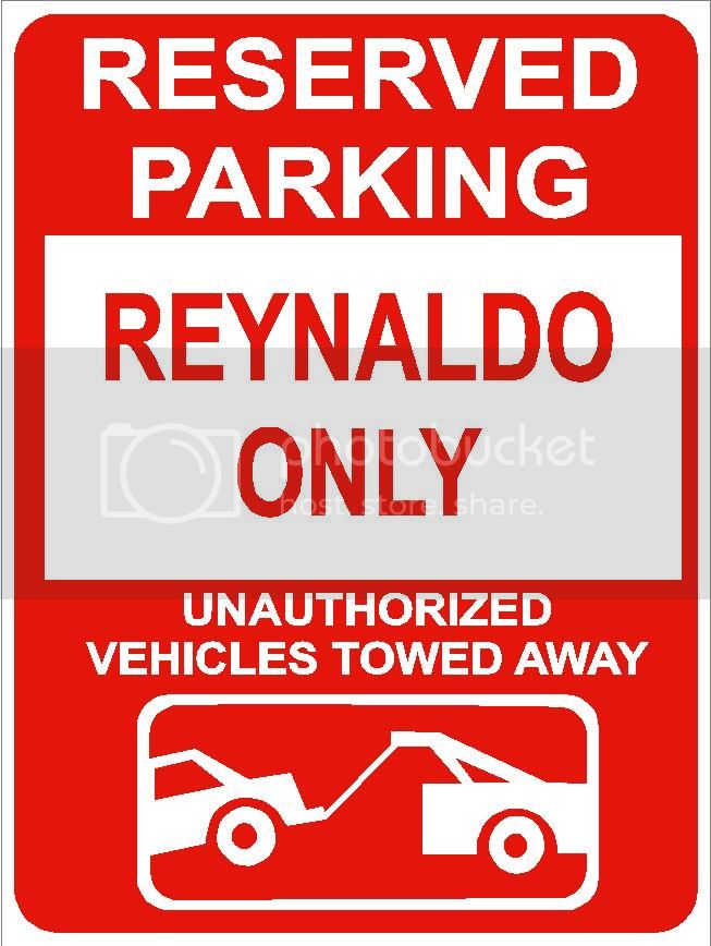 9"x12" REYNALDO ONLY RESERVED parking aluminum novelty sign great for indoor or outdoor long term use.