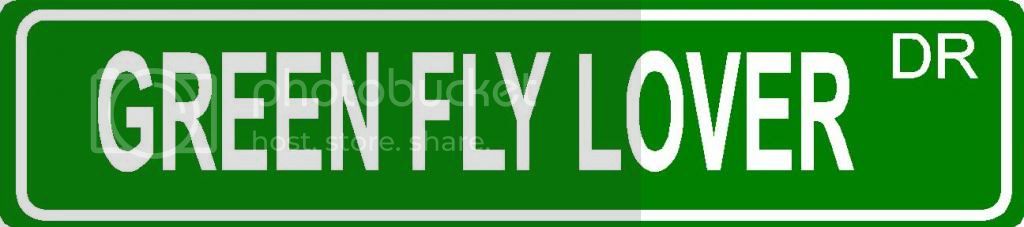 GREEN FLY LOVER Green 4" x 18" ALUMINUM animal novelty street sign great for indoor or outdoor long term use.